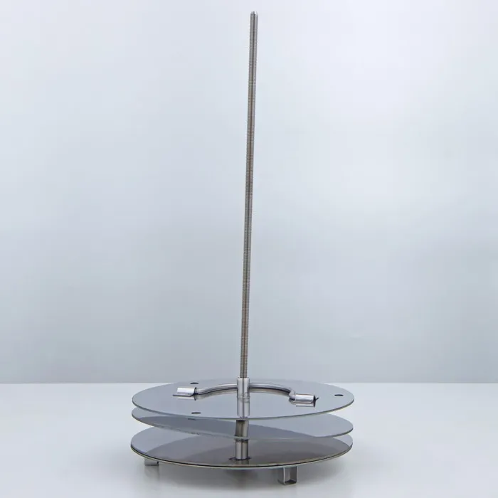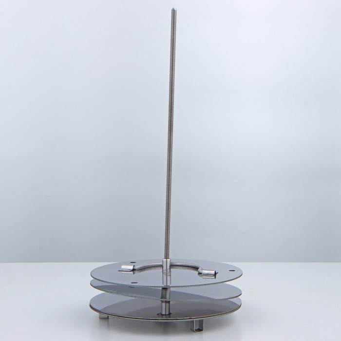 Разместить на основании кассеты первый слой банок, переложить его упорным диском, на который установить следующий слой банок с продуктами.