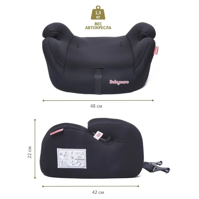 · Размеры бустера: Ширина 48 см, Длина 42 см, Высота до дуг 22 см, Высота сидения 11 см, Ширина по тканной вставке 28 см.