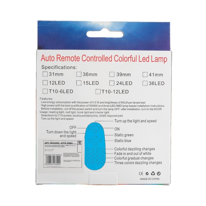 Автолампа светодиодная C5W с напряжением 12 В и 6 SMD-светодиодами является отличным выбором для замены стандартных ламп в вашем автомобиле. Ее размеры составляют 36 мм, что соответствует большинству типов фар. Благодаря мультицветному исполнению, данная лампа может использоваться как для освещения дороги, так и для создания декоративной подсветки в автомобиле. Цоколь автолампы позволяет легко установить ее в патрон фары без дополнительных адаптеров. Длительный срок службы светодиодов и низкое энергопотребление делают эту лампу отличным выбором для вашего автомобиля.