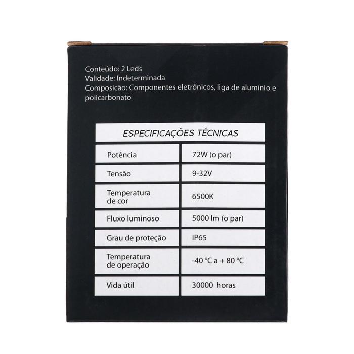 Автолампа светодиодная Н1, 72 Вт, 5000 Лм, 6500 К, IP65, набор 2 шт — Характеристики