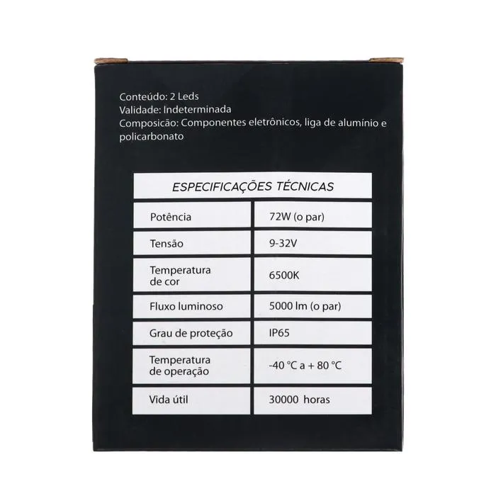 Автолампа светодиодная Н11, 72 Вт, 5000 Лм, 6500 К, IP65, набор 2 шт — Характеристики