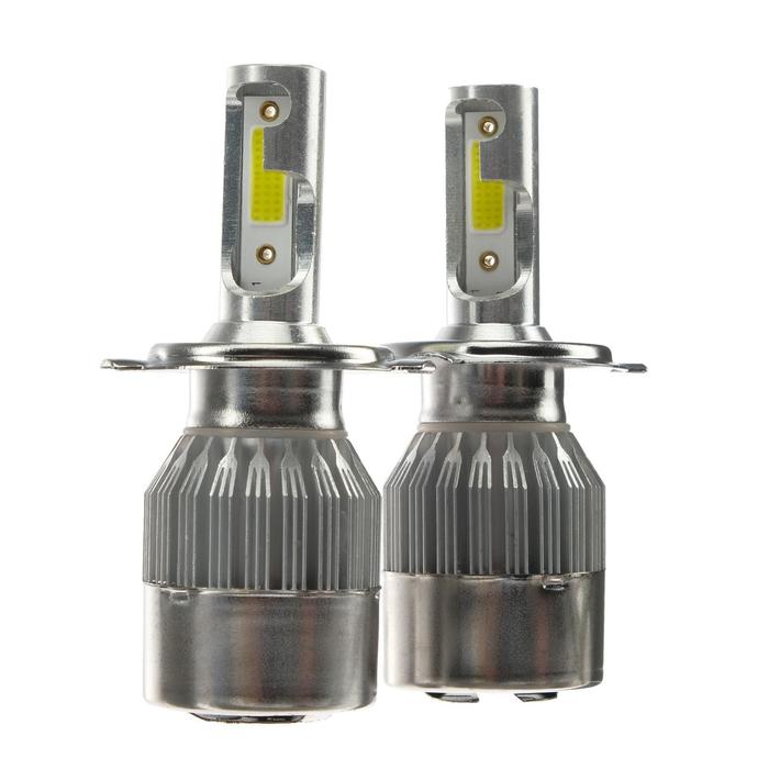 Яркая светодиодная лампа в фару со встроенным кулером. Свет холодный белый, без оттенков.