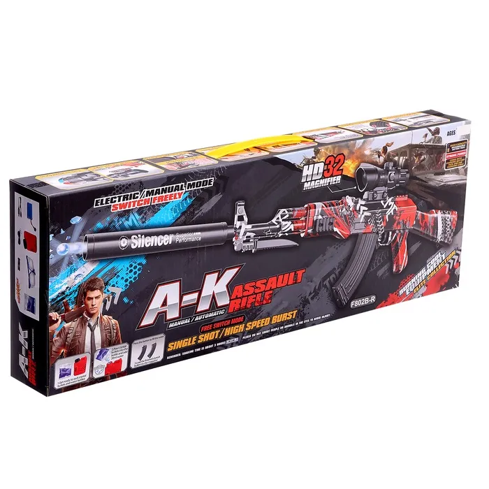 Игрушечный автомат «АК-47» также способствует укреплению взаимодействия детей в коллективных играх, развивает фантазию и повышает интерес к тактическим играм на свежем воздухе.