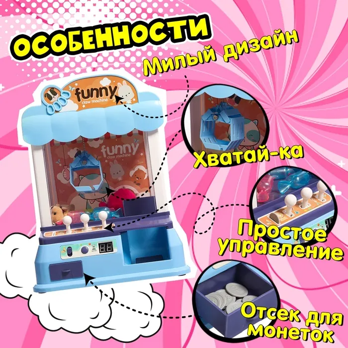 - Автомат мигает яркими огоньками и издает весёлую мелодию. Это делает игру ещё интереснее, как в настоящем игровом зале.