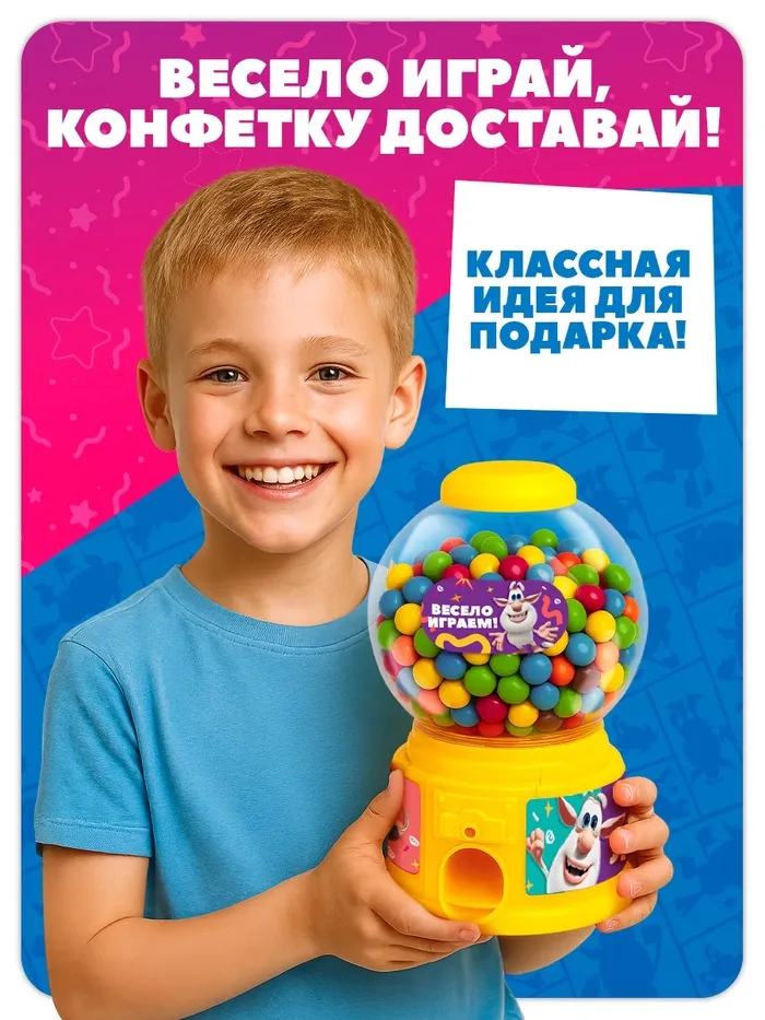 Автомат для конфет «Буба» — это уменьшенная копия настоящей машинки для выдачи сладостей.