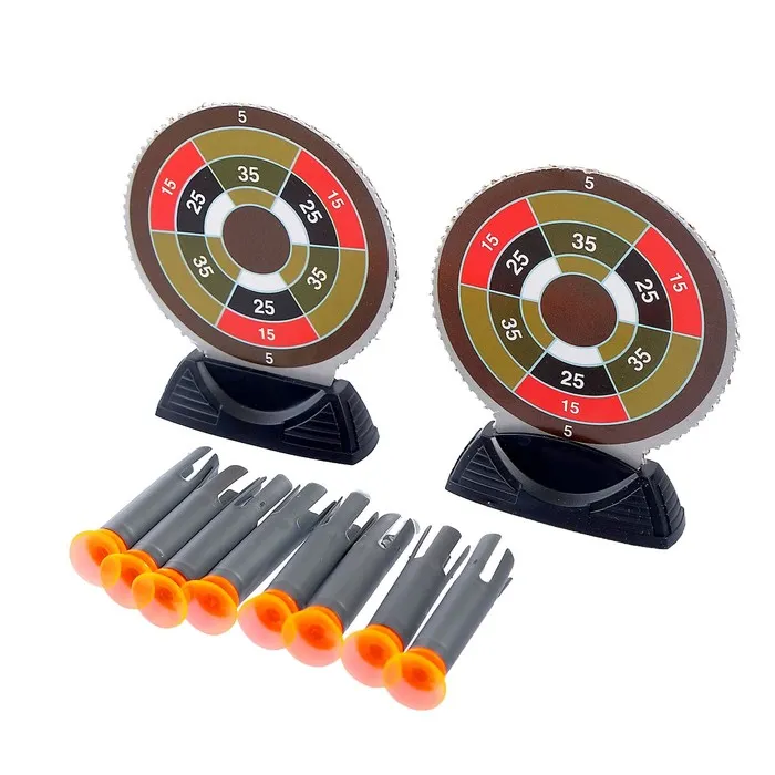 Установите мишени на подставки, зарядите автомат патронами или самодельными пулями, прицельтесь и выстрелите!