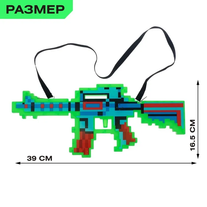 Автомат М16, пиксельный, с лазером, работает от батареек, цв МИКС — Характеристики