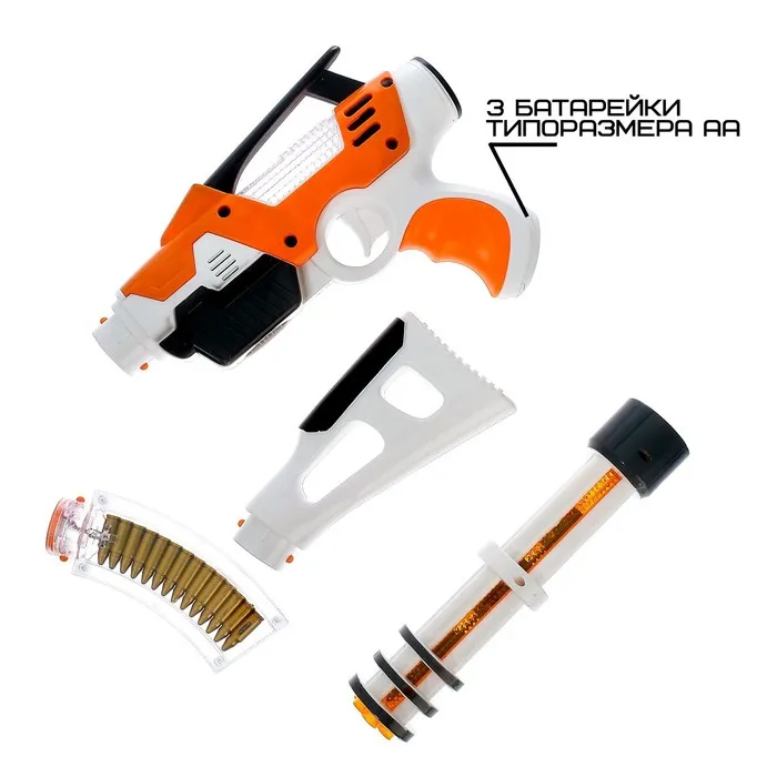 Автомат работает от 3 батареек АА (приобретаются отдельно), бинокль - от 3 батареек AG13 (входят в комплект).