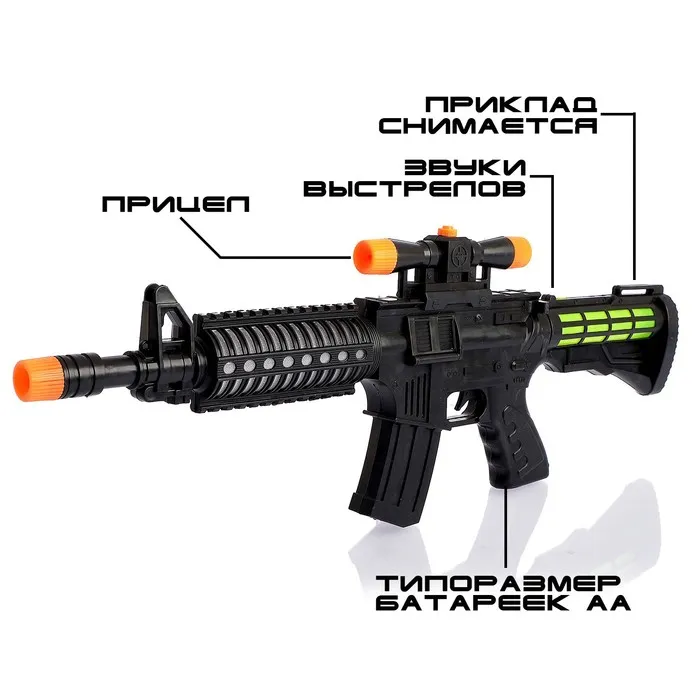 - Световые эффекты — автомат светится во время выстрела, создавая эффект настоящей боевой машины.