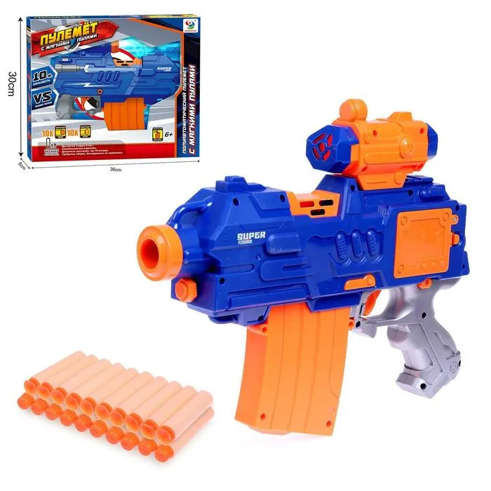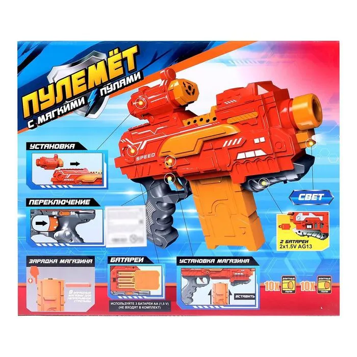 Автоматический бластер «Пулемёт», стреляет мягкими пулями, работает от батареек — Характеристики