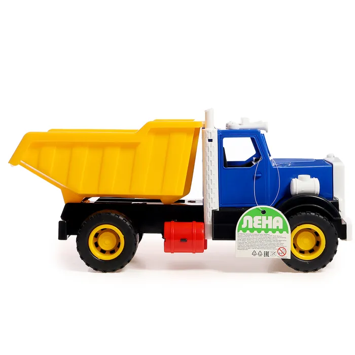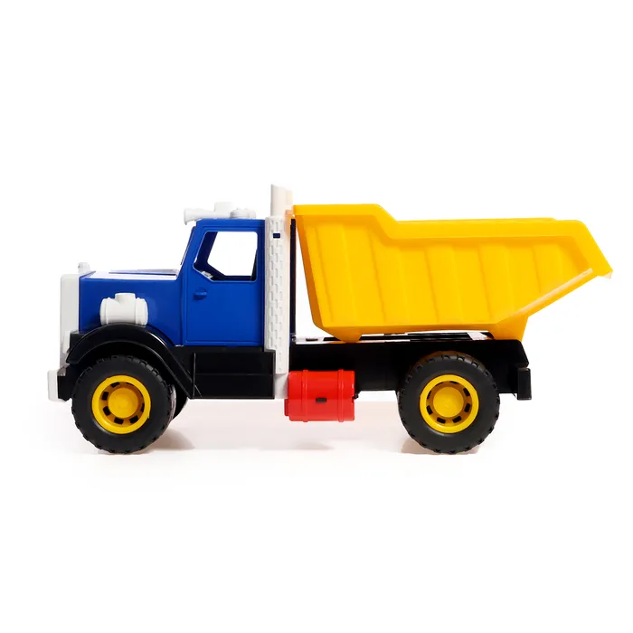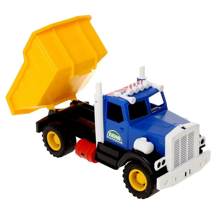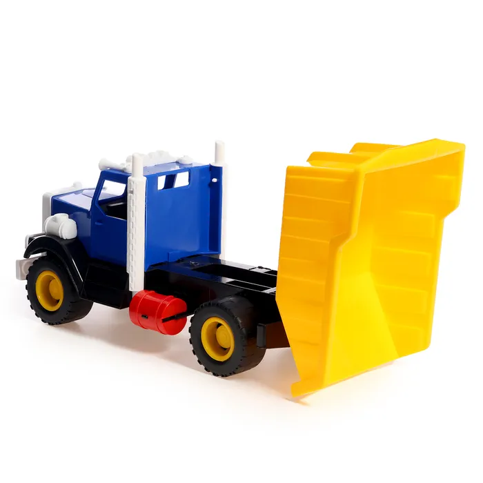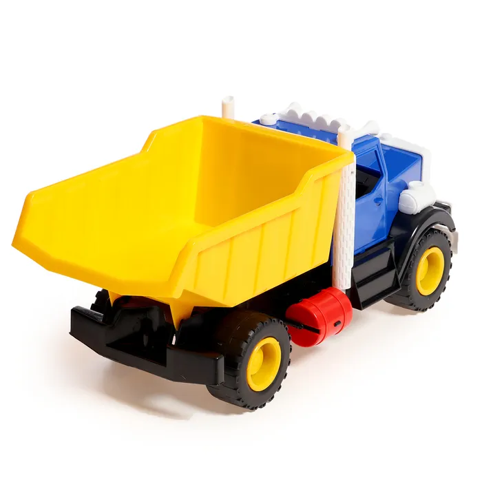 - Подвижный кузов: кузов самосвала легко поднимается и опускается, позволяя ребёнку загружать и выгружать «стройматериалы». Это добавляет игре реализма и помогает придумывать новые сценарии работы на стройке или в карьере.
