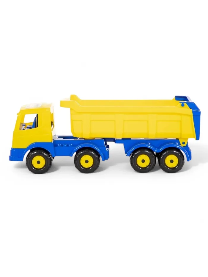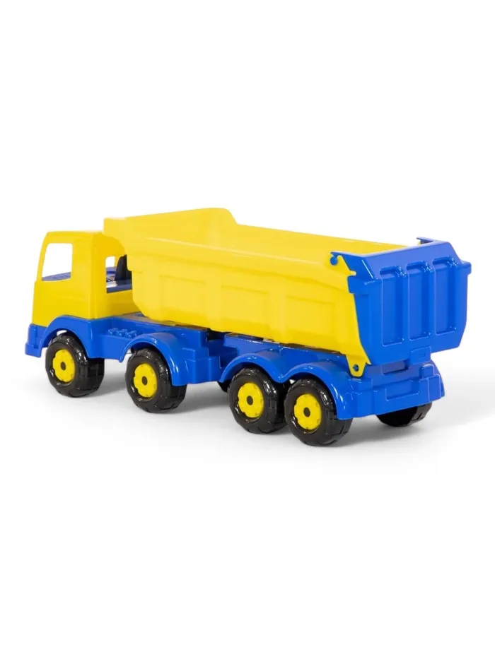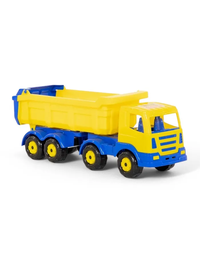 Самосвал — самая популярная игрушка среди мальчиков. Конструкция игрушки выполнена из высококачественного прочного пластика, а также лишена острых углов. Она оснащена вместительным откидным кузовом, в который можно засыпать песок или камушки.