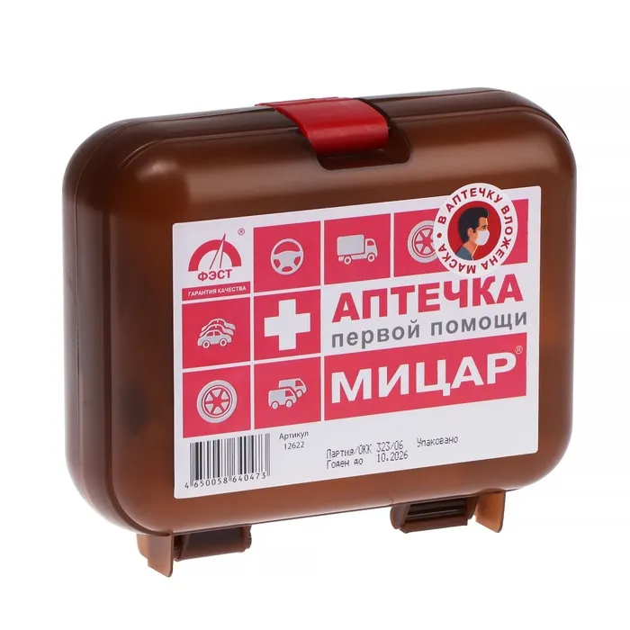 Эта аптечка предназначена для оказания первой медицинской помощи в дорожных условиях. Компактный и прочный пластиковый футляр коричневого цвета обеспечивает сохранность содержимого и удобство хранения в автомобиле. Аптечка соответствует стандартам ГОСТ РФ, что гарантирует ее качество и надежность.