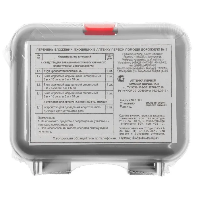 - Компактность и удобство хранения: благодаря небольшим размерам аптечку легко разместить в автомобиле, обеспечивая быстрый доступ в экстренных ситуациях;