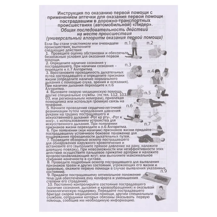 При возникновении экстренной ситуации используйте содержимое аптечки согласно инструкции. Важно заранее ознакомиться с её составом и правилами оказания первой помощи.