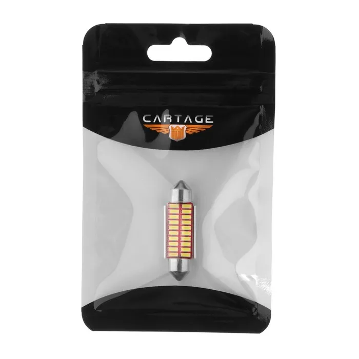 Автолампа светодиодная Cartage, C5W, 39 мм, 12 В, 20 SMD, свет белый-источник освещения для установки на автомобиль в качестве ближнего и дальнего света фар. Модель отличается надежной и эффективной светоотдачей. Прослужит длительное время. Лампа значительно повышает уровень безопасности при передвижении на авто в темное время суток