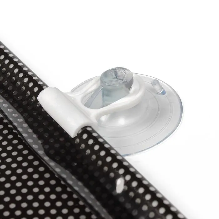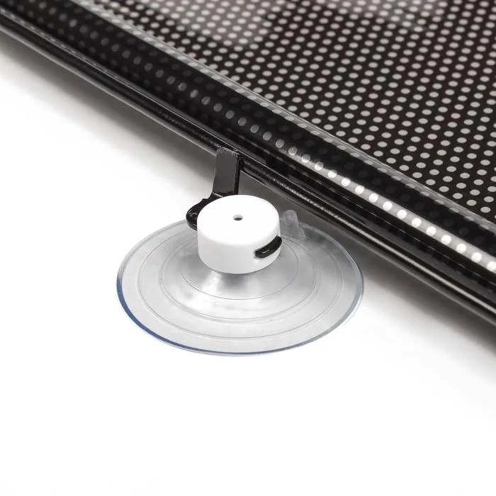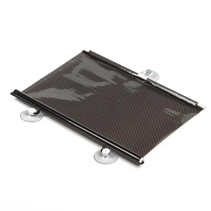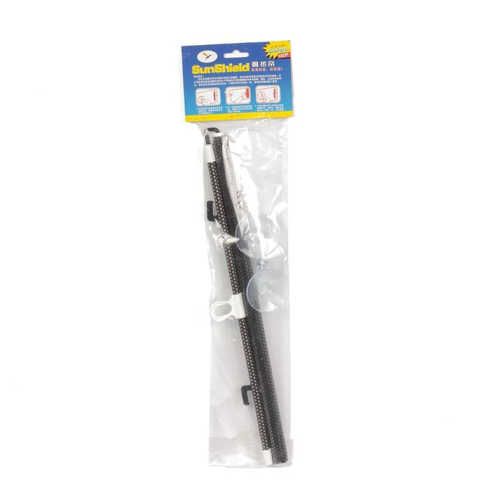 Рулонные шторки. Они могут крепиться на заднее или боковые окна, отличаются компактностью и удобством эксплуатации. В общем случае полотно шторы скручено в рулон и под действием пружины удерживается в корпусе, при необходимости шторка вытягивается из рулона и удерживается в таком состоянии с помощью крючьев. Рулон с помощью присосок крепится к стеклу, на присоске крепится и крючок для фиксации шторки в растянутом положении. Используется для дверных окон.