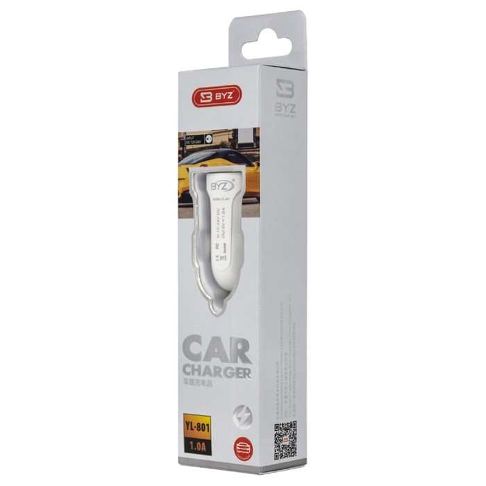 Автомобильное зарядное устройство BYZ YL-801, 1хUSB, 1 А, белое — Характеристики