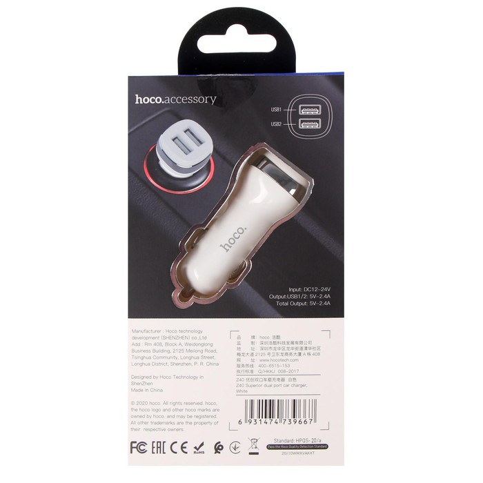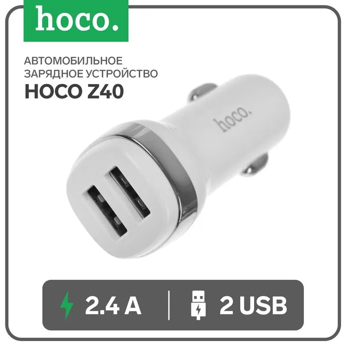 Автомобильное зарядное устройство Hoco Z40, 2 USB - 2.4 А, белый — Характеристики
