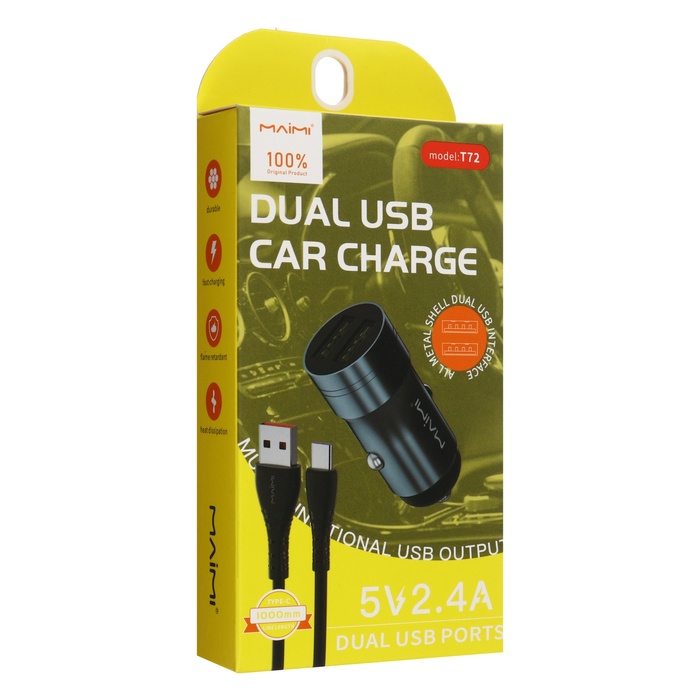 Автомобильное зарядное устройство Maimi T72, 2 USB, 2.4 А, кабель Type-C, чёрное — Характеристики