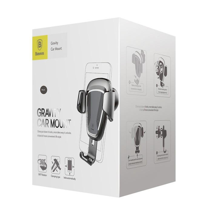 Автомобильный держатель Baseus Gravity, 63-88мм, черный, на воздуховод — Характеристики