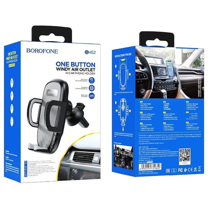Автомобильный держатель Borofone BH52, в дефлектор, для 4.5-6.7", зажим 55-90 мм, чёрный — Характеристики