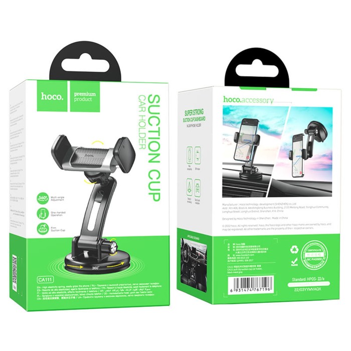 Автомобильный держатель Hoco CA111, для 4.5-7 дюймов, присоска, серый — Характеристики