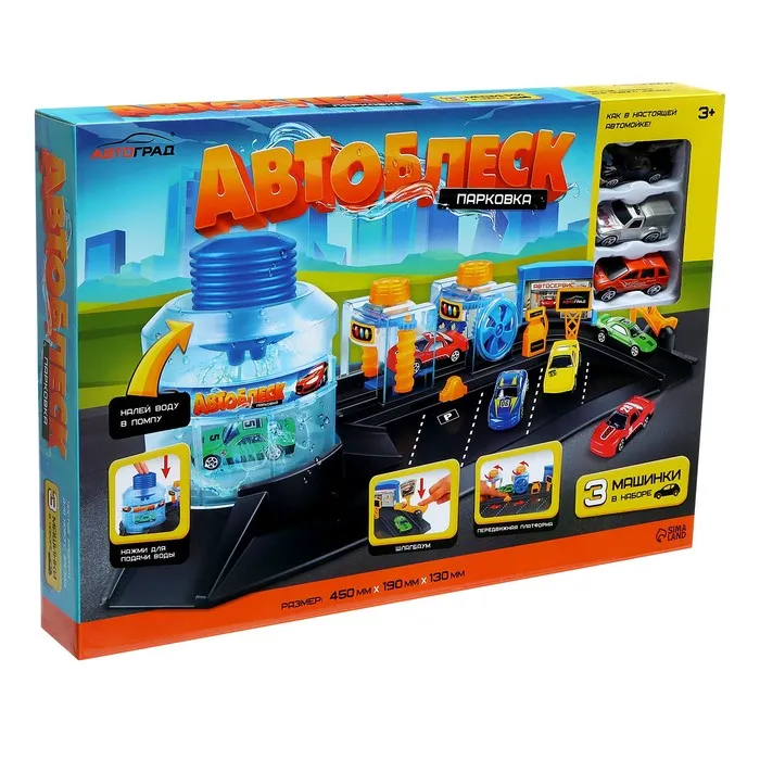 С автомойкой «Суперблеск» кроха сам приведёт свои машинки в надлежащий вид, теперь транспорт юного автомобилиста всегда будет сиять чистотой.