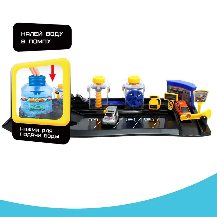 Увлекательный набор позволит ребёнку примерить на себя образ работника автомойки, малыш разыграет различные ситуации и узнает, как очистить автомобиль от загрязнений.