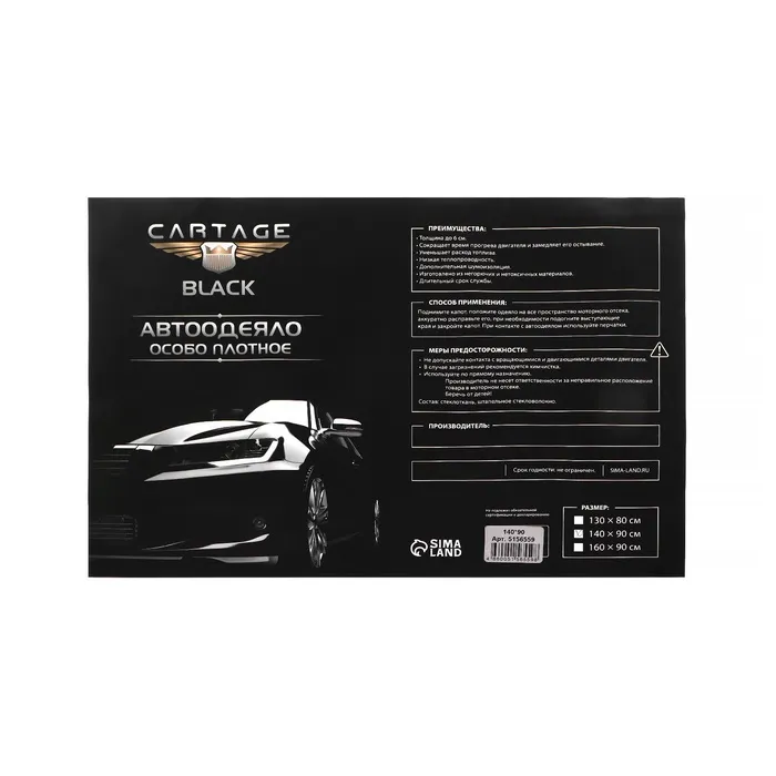Автоодеяло для двигателя Cartage, 140×90, чёрное, плотное — Характеристики