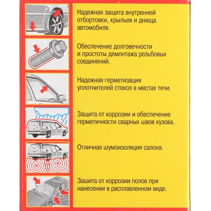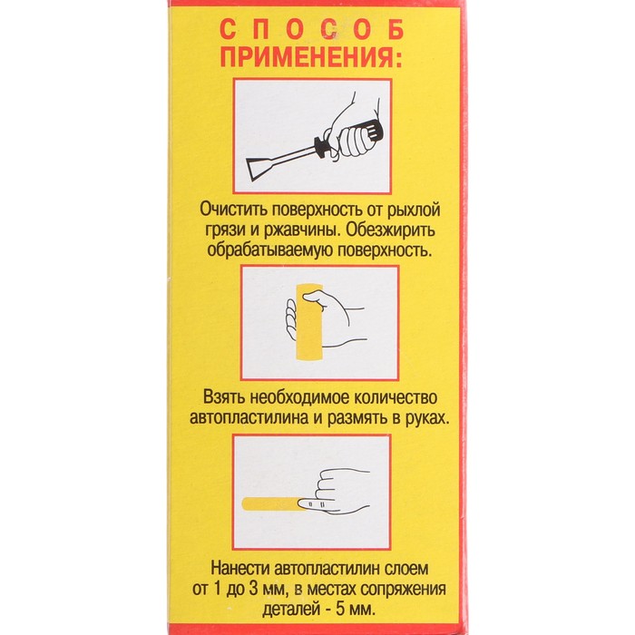 Автопластилин – это универсальное синтетическое средство, обладающее антикоррозийными и герметизирующими свойствами. Антикоррозийные свойства надежно защищают металлические поверхности от ржавчины и распространения уже возникшей коррозии, а адгезивные свойства надёжно соединяют состав с материалами различного вида. Не выделяет в воздух опасные для жизни и здоровья вещества при использовании и после подсыхания.