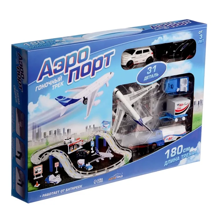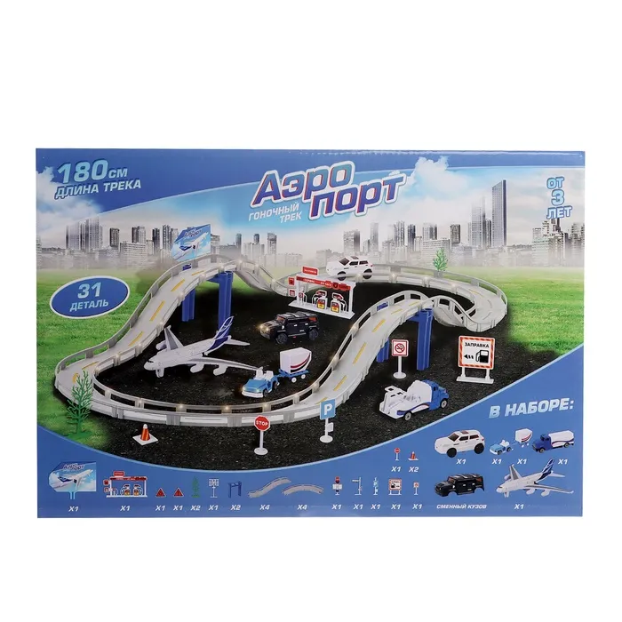 Автотрек «Аэропорт», 1 машина работает от батареек + сменный кузов, длина трассы 180 см — Характеристики