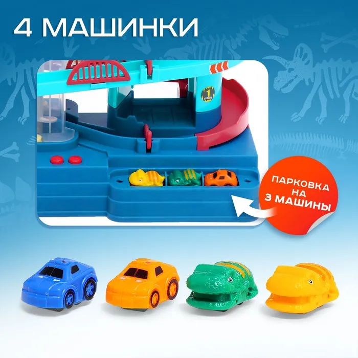 Автотрек «Дино Горки», с лифтом, 4 машинки, работает от батареек — Характеристики