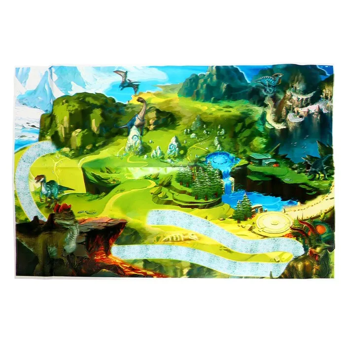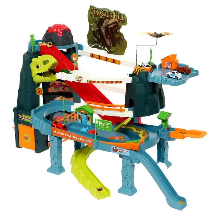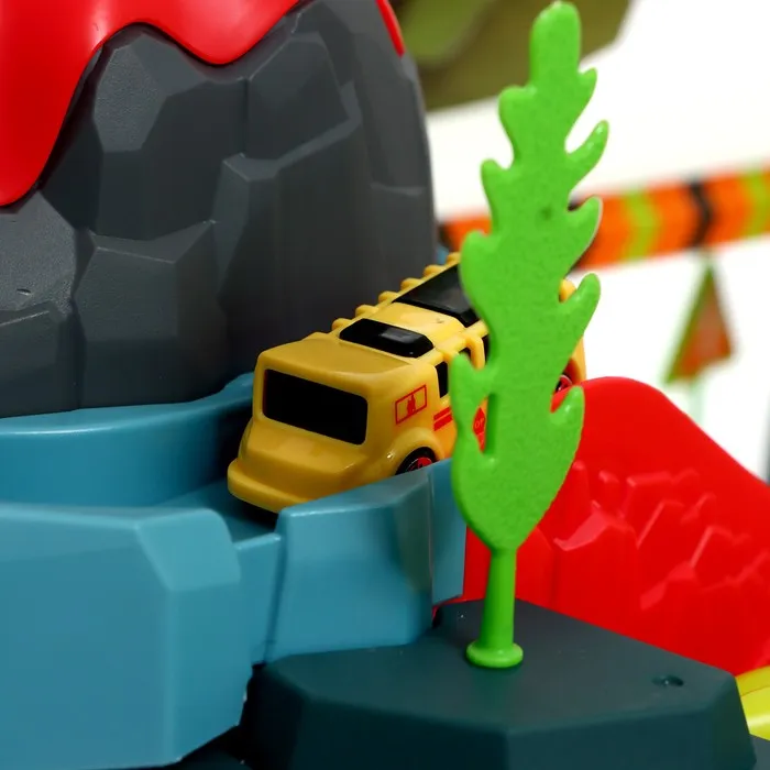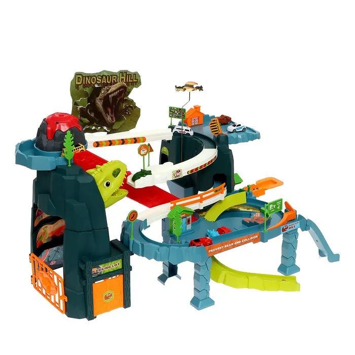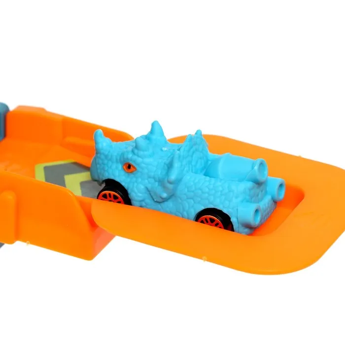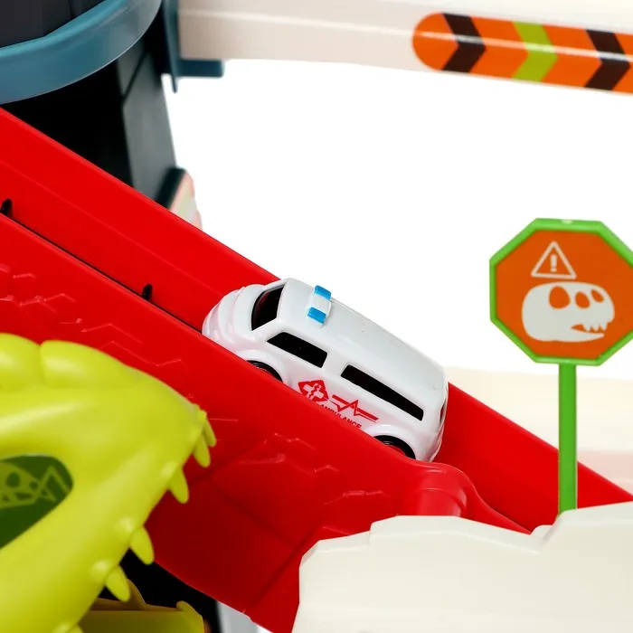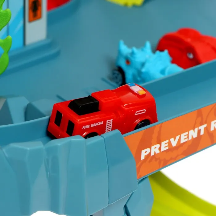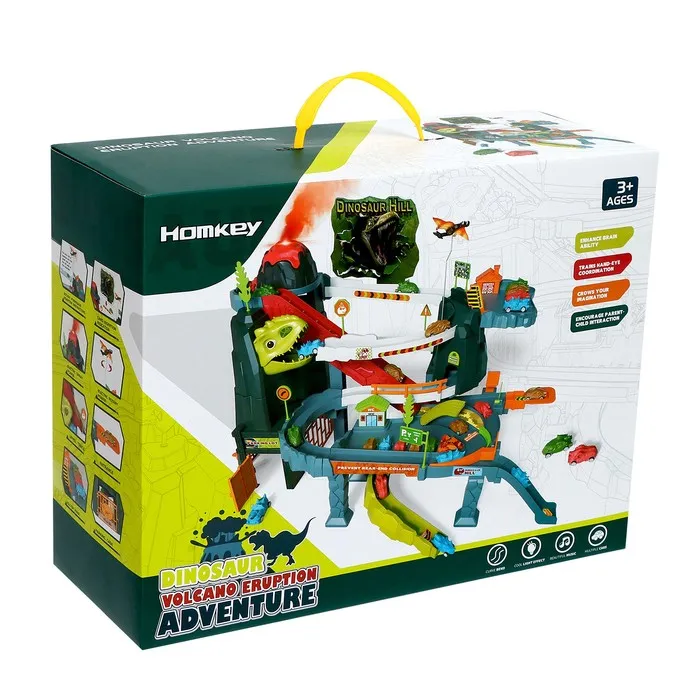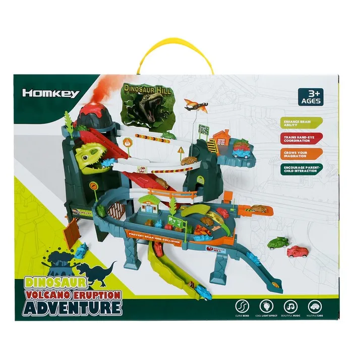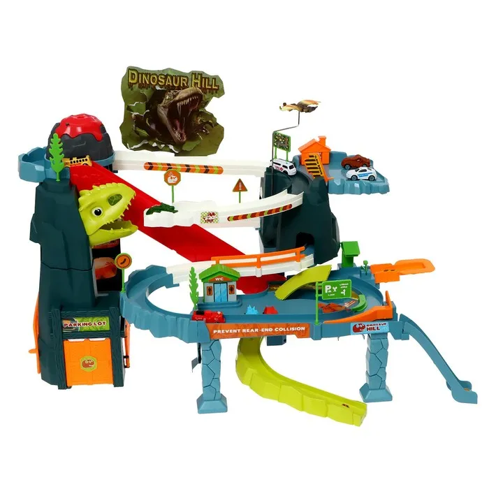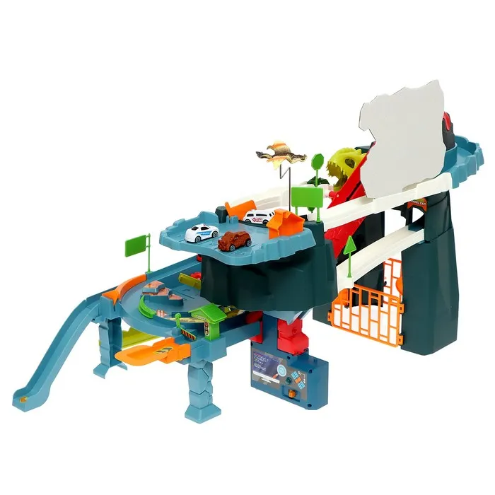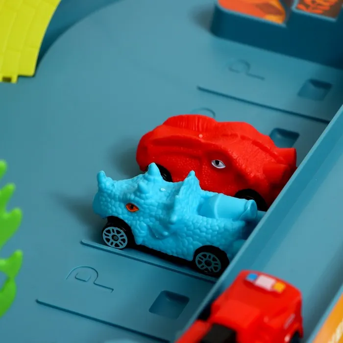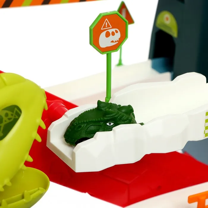 Гоночный трек с динозавром превращает обычную игру в настоящее приключение. Набор включает множество интересных элементов для создания захватывающего маршрута.