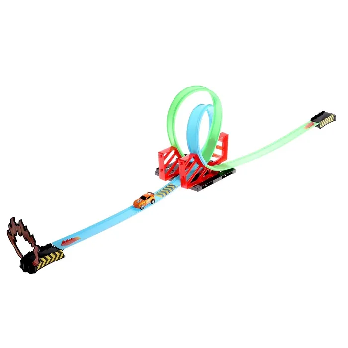 С автотреком малыш станет участником скоростных соревнований, научится делать впечатляющие виражи и захватывающие дух трюки. Трасса удобна и проста в сборке: поочерёдно установите элементы в специальные пазы и зафиксируйте их. Можно начинать заезд!