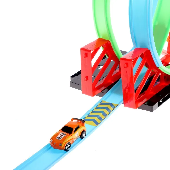 Машинка придёт в движение благодаря инерционному механизму: откатите её назад и резко отпустите. Болид мгновенно разовьёт скорость, преодолеет подъём и совершит невероятную мёртвую петлю. Чадо будет в восторге!