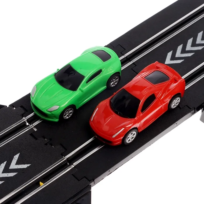 Автотрек «Гонки на суперкарах», с 2 машинами, пульт + ручной генератор, работает от сети — Характеристики