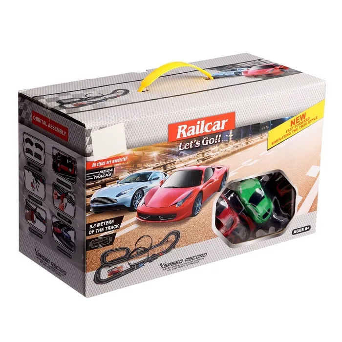 С автотреком «Гонки на суперкарах» ребёнок постоит 2-уровневую трассу с двумя мёртвыми петлями, крутыми подъёмами и спусками и устроит зрелищные заезды на скорость! Две машинки и пульты управления помогут сделать игру эффектнее и реалистичнее.