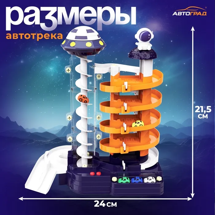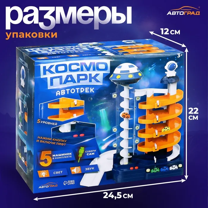 Автотрек «Космо-Парк», с лифтом, 5 машинок, работает от батареек — Характеристики