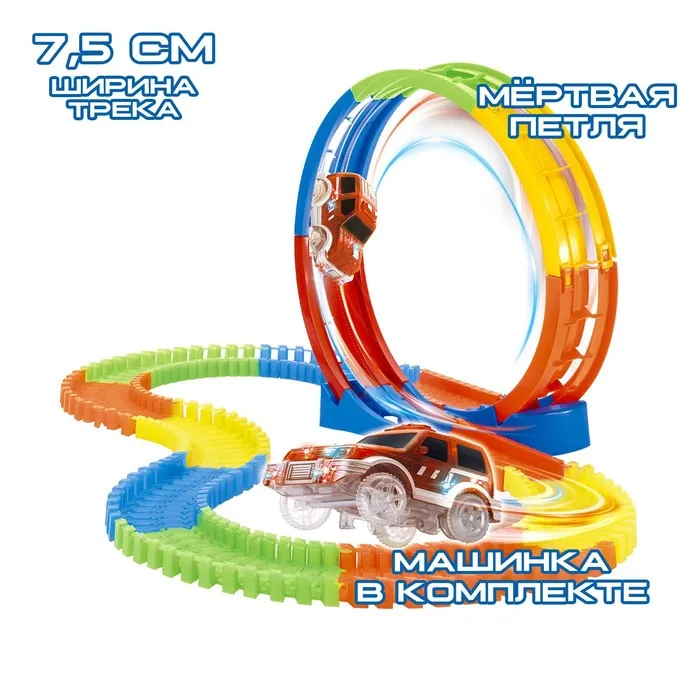 Автотрек «Магический Трек», гибкий, светится в темноте, 106 деталей, мёртвая петля — Характеристики
