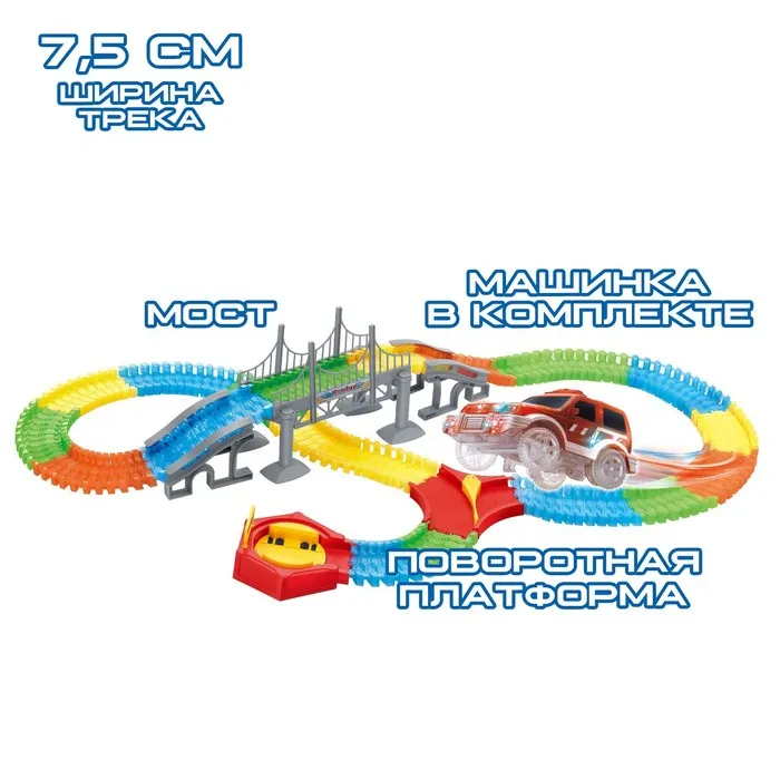 Автотрек «Магический Трек», гибкий, светится в темноте, 198 деталей, поворот — Характеристики