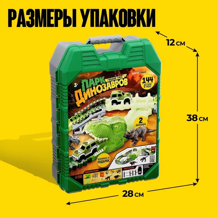 Автотрек «Парк динозавров», гибкий, работает от батареек, 144 детали — Характеристики