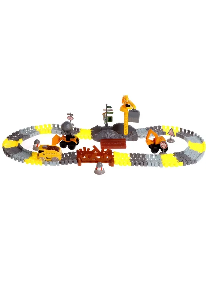 Представь себе целый мир, где грузовики, экскаваторы и краны работают без остановки, а дороги можно прокладывать, как захочешь! Этот гибкий автотрек — твой билет в удивительный мир строительной техники. Здесь всё движется, строится и оживает прямо у тебя на глазах!