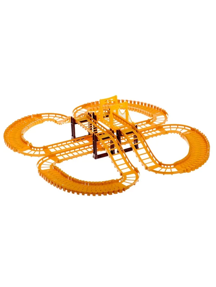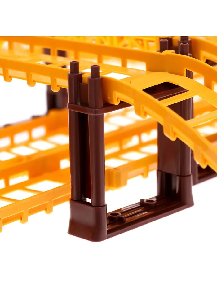 - Гибкая многоуровневая трасса позволяет создавать уникальные маршруты с подъёмными механизмами, мостами и динамичными элементами, такими как туннели, что делает игру интересной и разнообразной.