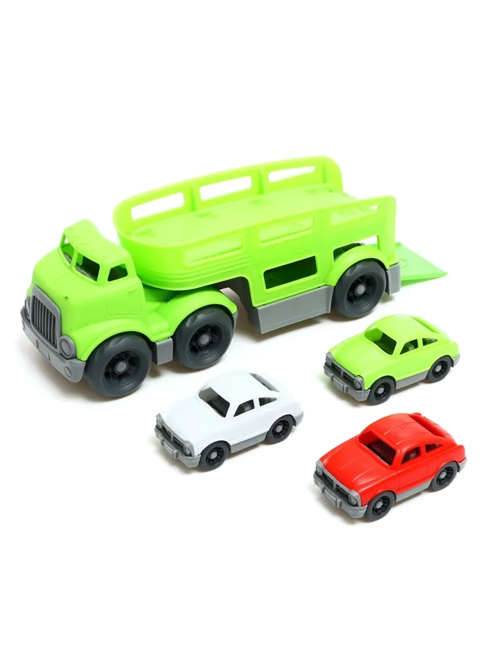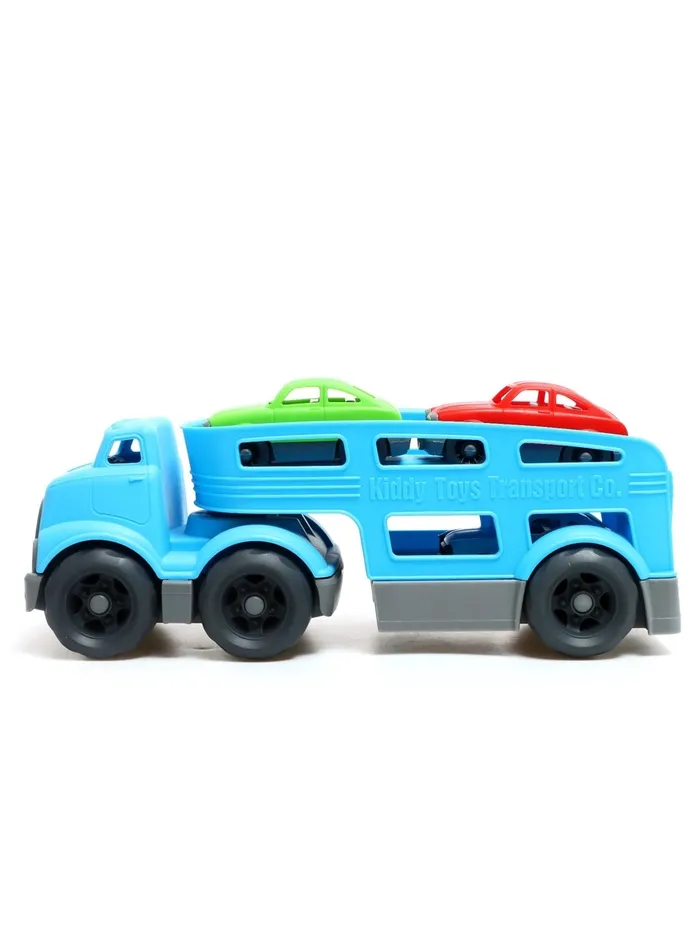 - Комплектация: крупный автовоз и две яркие машинки в комплекте.