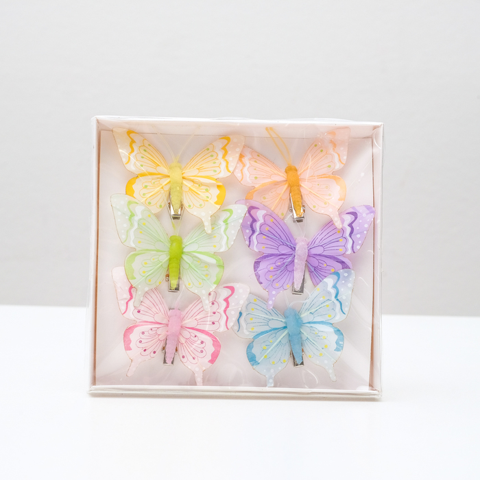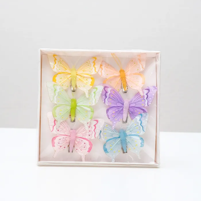 Бабочка для декора и флористики, на прищепке, пластиковая, микс, 1 шт., 7 х 6 х 1 см — Характеристики