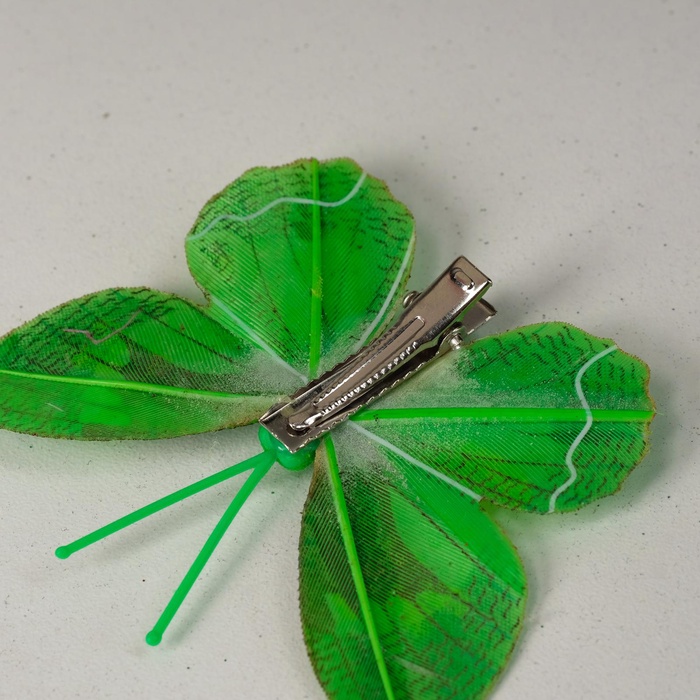 - Удобное крепление-прищепка: Бабочка закрепляется на различных поверхностях без клея или дополнительных инструментов. Прищепка надежно держится на текстиле, бумаге, лентах или тонких ветках.