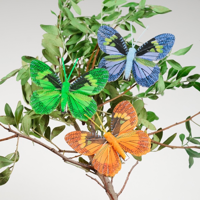 Бабочка для декора и флористики, на прищепке, пластиковая, микс, 6 шт., 8 см — Характеристики