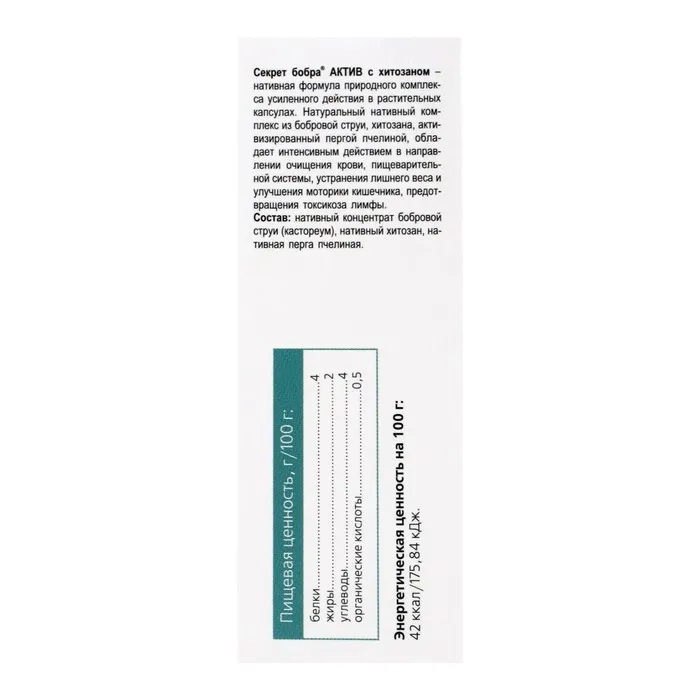 БАД «Секрет бобра актив» с хитозаном, снижение веса, 30 капсул по 500 мг — Характеристики