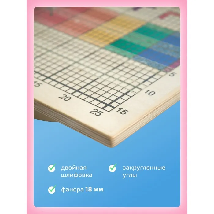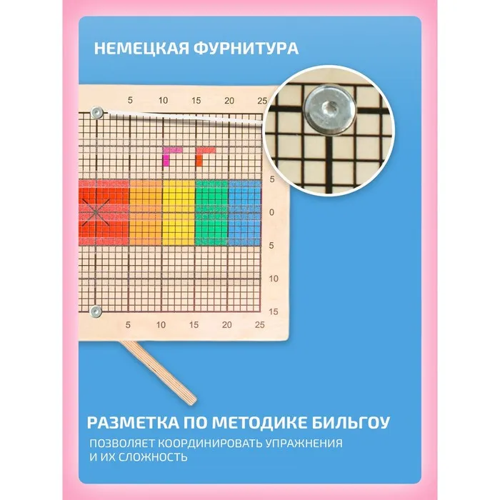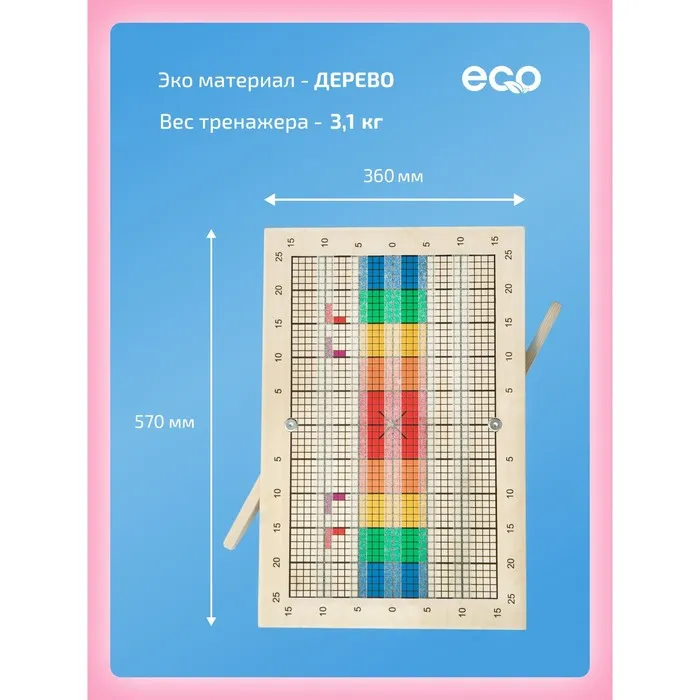 - Разметка из цветных секторов и квадратов, цифровых обозначений помогает контролировать положение ног в упражнениях.